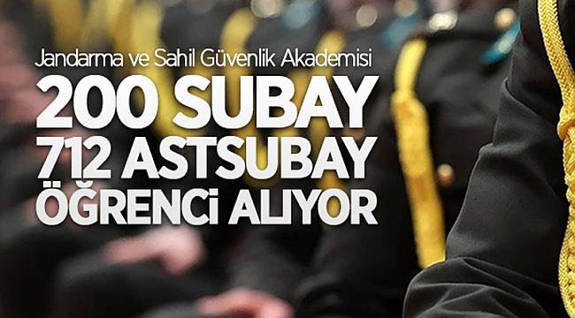Jandarma ve Sahil Güvenlik Akademisi Başkanlığında eğitim-öğretim görecek, Jandarma Genel Komutanlığının muvazzaf subay ve astsubay ihtiyacını karşılamak amacıyla 200’ü subay, 712’si astsubay öğrenci olmak üzere toplan 912 öğrenci alacak.