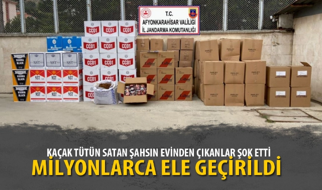 Afyonkarahisar İl Jandarma Komutanlığı ekipleri tarafından Afyonkarahisar kent merkezinde ikamet eden R.A. isimli şahsın yasadışı yollarla temin ettiği kaçak sigaraları, tütün ve makaronları piyasaya sürerek haksız kazanç elde ettiği tespit edildi. Soruşturma kapsamında şüpheli şahsın ikametinde yapılan aramada; 1 milyon 128 bin 200 adet boş makaron, 605 kilogram kaçak tütün, 33 bin 300 gram bandrolsüz açık tütün, 677 adet kullanılmış bandrol, bin 335 adet makarona basılmış kaçak sigara ve 134 adet bandrolsüz 100 gramlık paket tütün ele geçirildi.