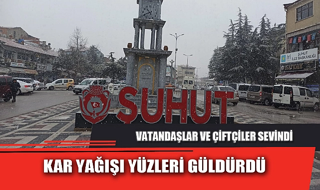 Afyonkarahisar’ın kışın en çetin geçtiği ilçelerden birisi olan Şuhut ilçesinde kar yağışı etkili oldu. Sabah işe gitmek için evden çıkan ilçe halkı ise kar yağışını görünce şaşkınlık yaşadı. Kar yağışı ile birlikte hava sıcaklığı ise eksi derecenin altına düştü. Kar yağışının heyecanını yaşayan Berke Kurt isimli ilçe sakini "Şuhut ilçesinde yağan kar yağışı bütün çiftçilerin ve herkesin yüzünü güldürdü. Allah bütün her yere herkese bu şekilde kar versin. Her yer kuraklık geçiyordu Allah'ıma binlerce şükür olsun ki çiftçilerimizin yüzü bir kez daha güldü. Çok heyecanlıyız kar yağışından" dedi. Fikri Tanrıkulu ise “Vallahi mutluyuz çiftçilerimizin yüzü güldü yani bereket. Çocuklar şimdi okulda gördüm kar oynuyor mesela ne bileyim uzun zamandır bekliyorduk bu güzelliği. Hava çok güzel gerçekten çiftçilerimiz mutlu uzun zamandır bekliyorduk bunu Allah'ımıza şükür" diye konuştu. Öte yandan, ilçede kar yağışının aralıklar devam etmesi bekleniyor. >>İHA