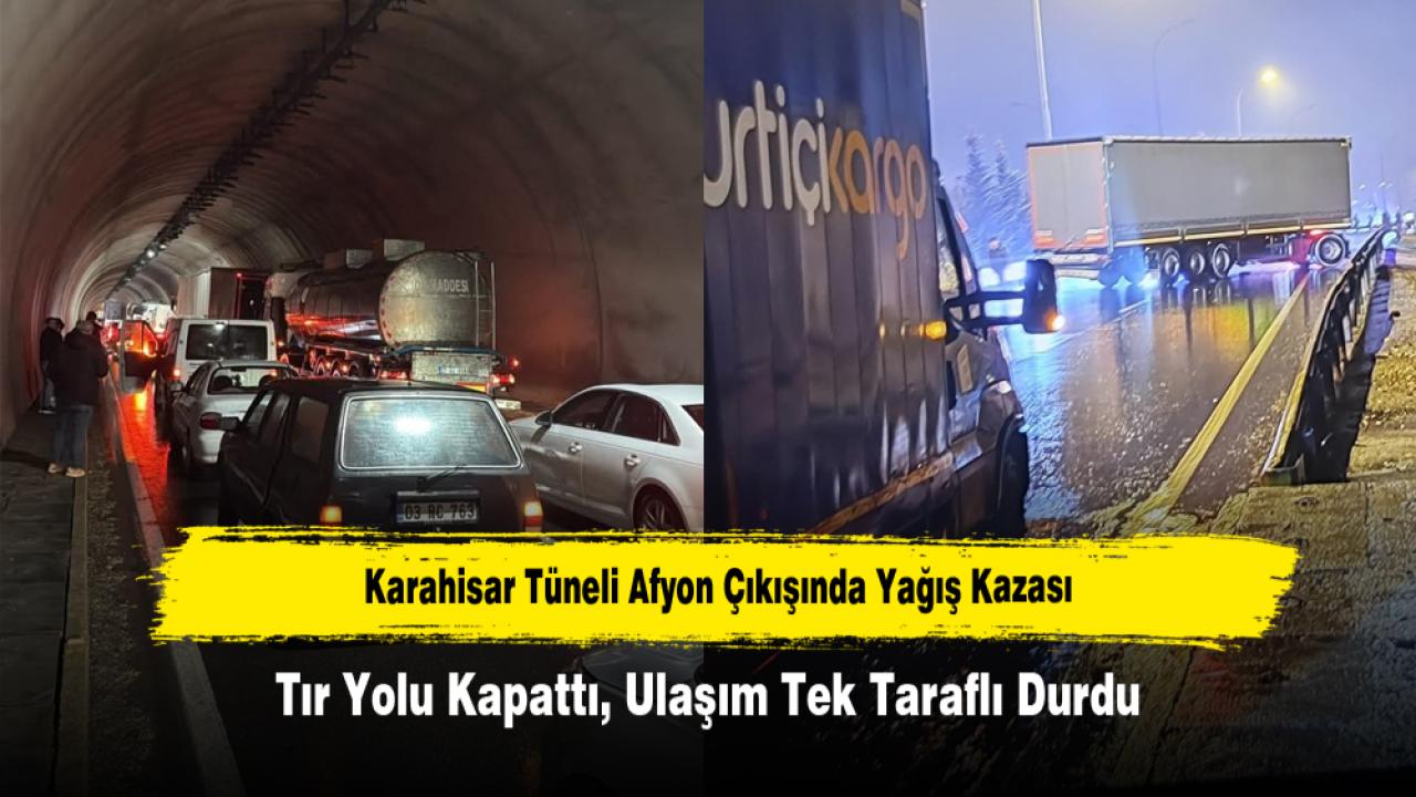 Olay, Karahisar Tüneli'nin Afyonkarahisar yönüne çıkan noktasında meydana geldi. Edinilen bilgilere göre yoğun yağışta kontrolden çıkan tırın yolu kapatmasıyla birlikte güzergah trafiğe kapandı.