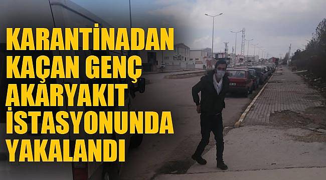 KARANTİNADAN KAÇAN GENÇ AKARYAKIT İSTASYONUNDA YAKALANDI