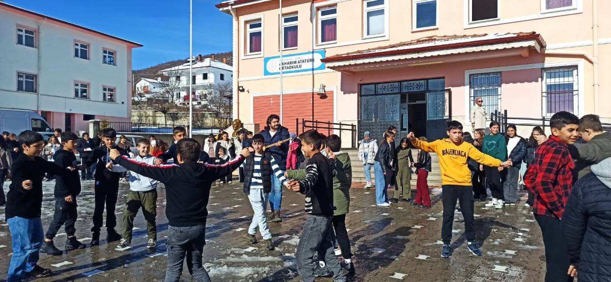 Okulda karnelerin dağıtılmasının ardından düzenlenen etkinlikte, Müzik Öğretmeni Mehmet Emre Tenger bağlamasıyla türküler seslendirdi. Öğrenciler söylenen türkülere hep birlikte eşlik ederken, oyun havaları eşliğinde öğretmenleriyle birlikte oynadı. Yaklaşık üç saat süren etkinlik boyunca okul bahçesi ve koridorlarda renkli görüntüler oluştu. Öğrencilerin yoğun ilgi gösterdiği etkinlikte, karne günü stres yerine mutluluk ve birliktelik duygusuyla geçti.