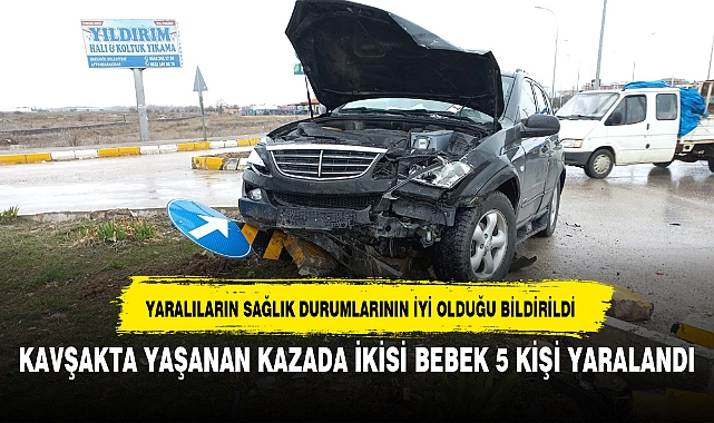KAVŞAKTA YAŞANAN KAZADA İKİSİ BEBEK 5 KİŞİ YARALANDI