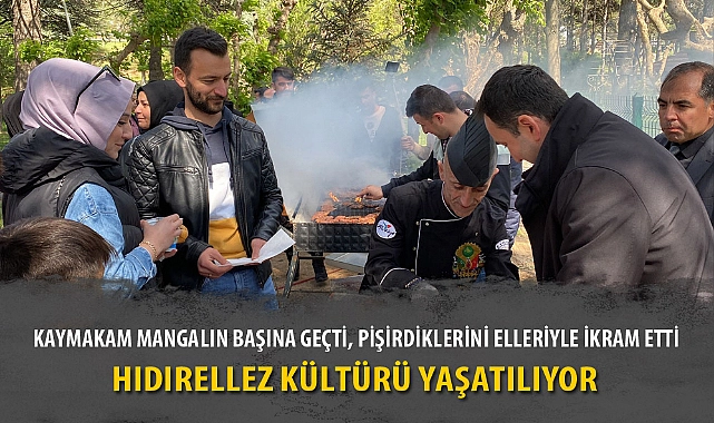 Bolvadin ilçesinde vatandaşların katıldığı Hıdırellez kutlamaları çerçevesinde mangalın başına geçen Kaymakam Taner Bolat pişirdiği köfte ve sucukları daha sonra kendi elleri ile vatandaşlara ikram etti.