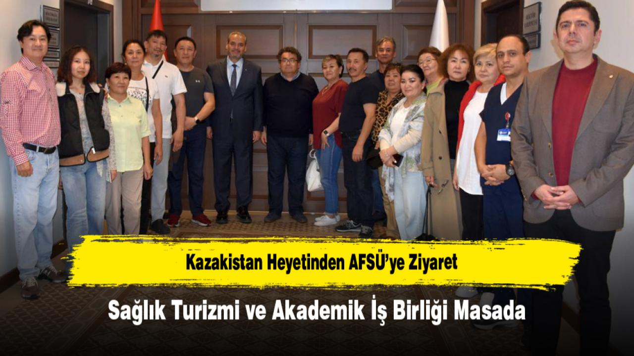 Afyonkarahisar Sağlık Bilimleri Üniversitesi (AFSÜ) Rektörü Prof. Dr. Adem Aslan, Türkiye ile Kazakistan arasında sağlık turizmini geliştirmeye yönelik temaslarda bulunan heyeti makamında ağırladı. Görüşmede, sağlık alanında ortak girişimler ve öğrenci-personel değişim programları ele alındı.