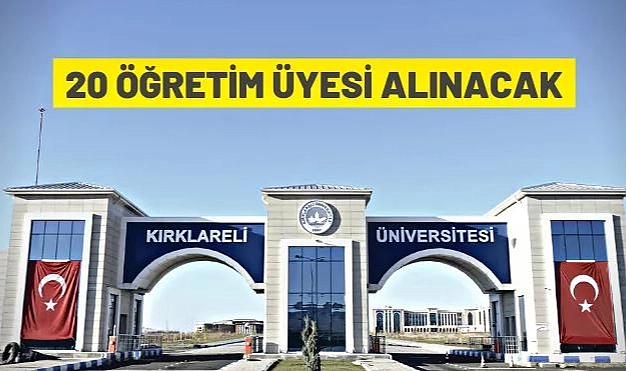 Kırklareli Üniversitesi Rektörlüğü, 2547 sayılı Kanun, 657 sayılı Devlet Memurları Kanunu, Devlet Yükseköğretim Kurumlarında Öğretim Elemanı Norm Kadrolarının Belirlenmesine ve Kullanılmasına İlişkin Yönetmelik, Öğretim Üyeliğine Yükseltilme ve Atanma Yönetmeliği ve Üniversite'nin Öğretim Üyeliğine Yükseltilme ve Atanma Kriterlerine göre 20 Öğretim Üyesi alacak.
