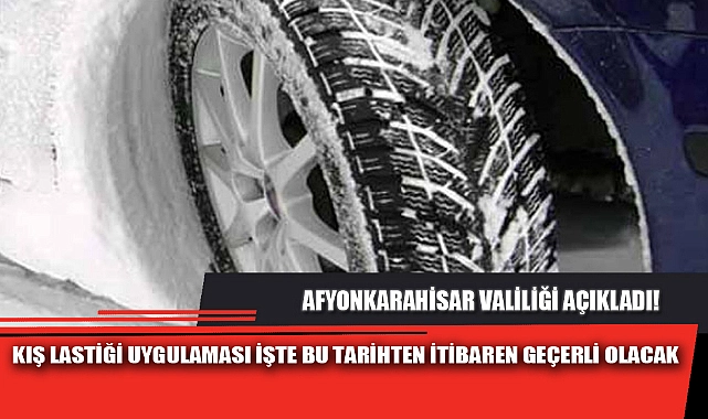 Afyonkarahisar Valiliği’nden sürücülere kış lastiği uygulamasının 1 Aralık ta başlayacağı hatırlatılarak, bu hususta sürücülerin kurallara uymaları istenildi.