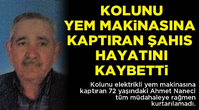 Afyonkarahisar’ın Şuhut ilçesinde, elektrikli yem karma makinesinde çalıştığı esnada kolunu kaptıran Ahmet Naneci kaldırıldığı hastanede tüm müdahalelere rağmen kurtarılamayarak hayatını kaybetti.