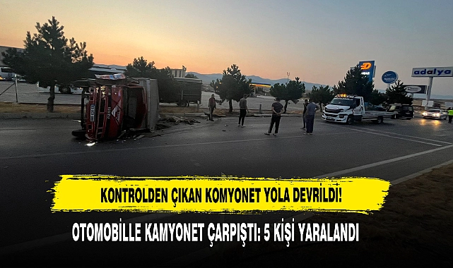 Afyonkarahisar’da otomobille kamyonetin çarpışması sonucu yaşanan trafik kazasında 5 kişi yaralanırken, kazada çarpışmanın etkisi ile kamyonet yol ortasına devrildi.