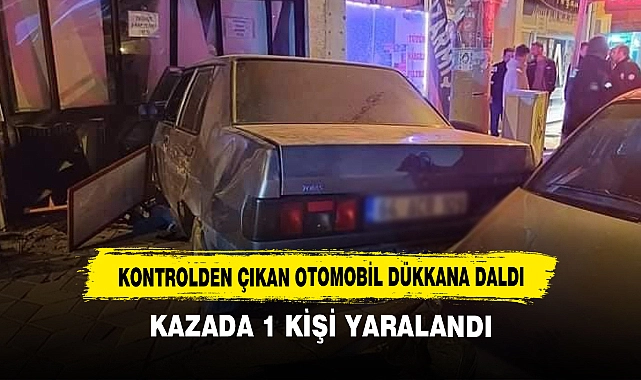 Kontrolden çıkan otomobilin dükkana girmesi sonucunda sürücü yaralandı.