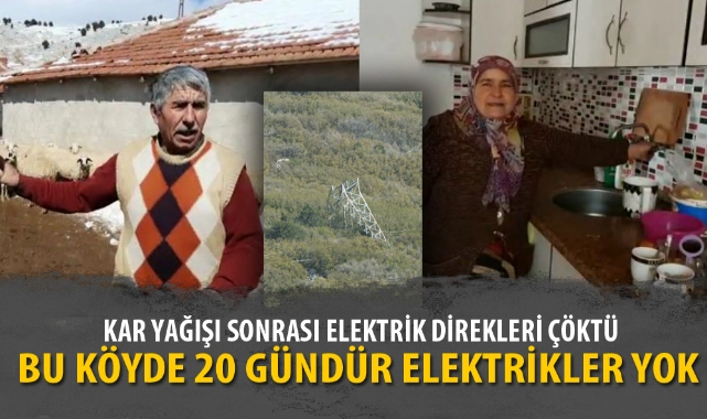 Afyonkarahisar’ın Dinar ilçesi Cerityaylası köyünde elektrik direklerinin kar yağışı nedeniyle çökmesi sonucu 20 gündür elektrikler yok. Köylüler susuz ve elektriksiz yaşam mücadelesi veriyor.