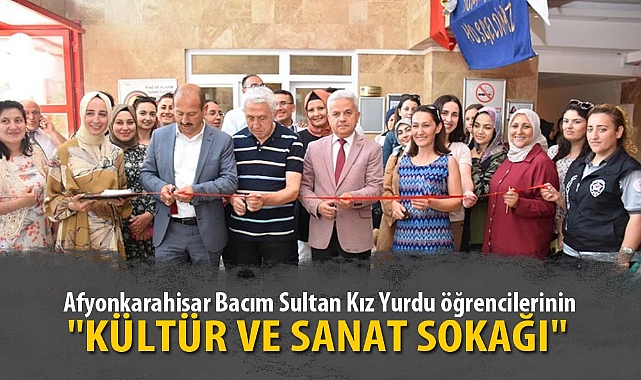 Afyonkarahisar Bacım Sultan Kız Yurdu öğrencilerinin el sanatları kurslarında yaptığı ürünlerin yer aldığı "Kültür ve Sanat Sokağı" sergisinin açılışı yapıldı.