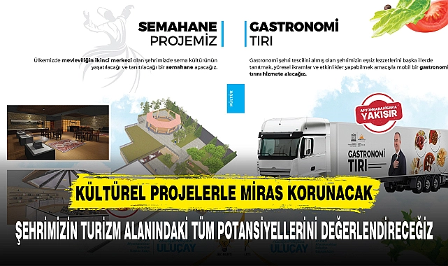 Bu nokta hayat geçireceğimiz bir diğer projemiz ise Gastronomi Tırı projemizle şehrimizin eşsiz lezzetlerini tanıtacağız. Semahane ve Gastronomi Tırı projelerimizle şehrimizin turizm alanındaki bütün potansiyellerini değerlendirerek şehrimize katma değer katacağız” dedi.