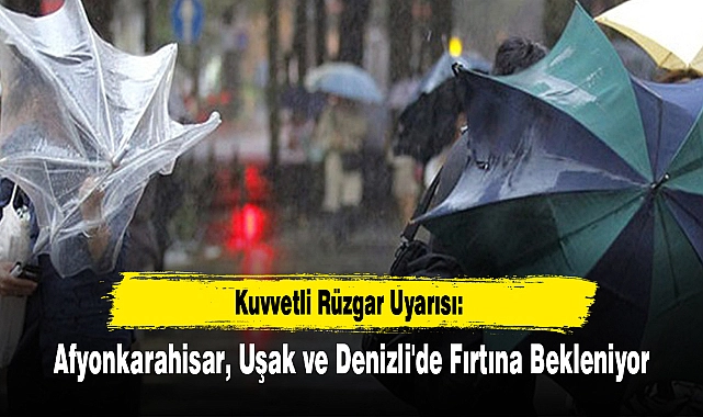 Meteoroloji Genel Müdürlüğü, 16 Mayıs 2025 Cuma günü öğle saatlerinden itibaren Afyonkarahisar, Uşak ve Denizli'de kuvvetli rüzgar ve fırtına beklendiğini duyurdu. Güney ve güneydoğu yönlerden esmesi beklenen rüzgarın hızının 50-80 km/saate ulaşması öngörülüyor. Fırtınanın 17 Mayıs 2025 Cumartesi sabah saatlerinde etkisini kaybetmesi bekleniyor.