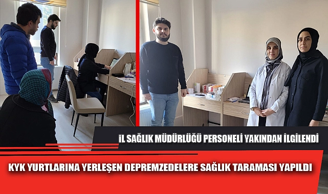 Afyonkarahisar İl Sağlık Müdürlüğü ilk günden beri bütün imkânlarla depremzede vatandaşlara yardımcı olmak için çabalıyor. Bölgeye giden ekipler pek çok cana dokundu. Hastanelere gelen yaralılar tedavi altına alınırken, Afyonkarahisar’a geçici ikamet için gelen depremzede vatandaşların sağlık taramaları da il sağlık müdürlüğü personeli tarafından yapılıyor. Bu bağlamda Tınaztepe KYK yurtlarına yerleştirilen afetzede vatandaşlara Afyonkarahisar Merkez Toplum Sağlığı Merkezi personelince sağlık taraması yapılıp, Afyonkarahisar’da kaldıkları süre boyunca takipleri yapılmak üzere kayıtları alındı. >>Sefa Nakilcioğlu