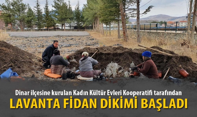 Afyonkarahisar'ın Dinar ilçesine kurulan Kadın Kültür Evleri Kooperatifi aracılığı üretilen lavanta ürünlerinin hammaddesi olarak kullanılacak olan fidanların dikimi başladı.