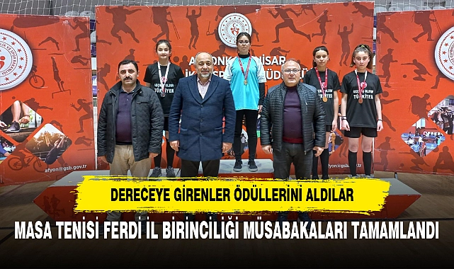 Final maçları sonucunda düzenlenen ödül töreni ile sporcular madalyalarını aldı. Afyonkarahisar’da farklı spor branşlarında karşılaşmalar devam ediyor. 16 kadın 37 erkek sporcunun katıldığı masa tenisi ferdi müsabakaları heyecan dolu anlara sahne oldu. Maçlar sonucunda; erkekler kategorisinde Ahmet Okultaş birinci, Ala Muhammet ikinci, Emre Erkli üçüncü, Mevlüt Kiraz dördüncü oldu. Kadınlar kategorisinde ise Beyza Arife Eşgin birinci, Şaziye Nur Yaska ikinci, Azize Elif Kaya üçüncü, Semiha Yaska dördüncü oldu. Final maçlarından sonra düzenlenen ödül töreni ile başarılı olan sporculara madalyaları; İl Müdürü İsmail Hakkı Kasapoğlu, Spor Hizmetleri Müdürü Yılmaz Erşen ve Şube Müdürü Fahrettin Kayar tarafından takdim edildi. >>YASİN AY