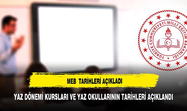 Milli Eğitim Bakanlığı'ndan yapılan yazılı açıklamada, 15 Mayıs tarihinde yayınlanan DYK e-Kılavuzu'na göre yaz dönemi kursları ve yaz okullarının 1 Temmuz-29 Ağustos tarihleri, eğitim ve öğretim dönemi destekleme ve yetiştirme kurslarının ise 2 Eylül 2024-6 Haziran 2025 tarihleri arasında açılacağı belirtildi.