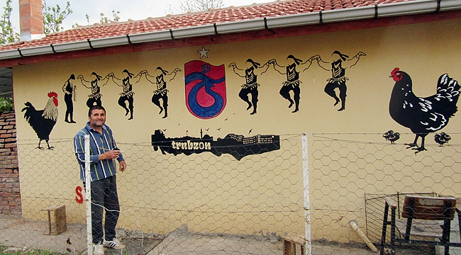 Aynı zamanda kanatlı kayvansever olan Hotaman, bağ evinde beslediği tavuk ve horozların figürlerinide duvara işleyerek boş zamanlarını değerlendirmeye çalışıyor. Yaptığı çalışmanın çevredeki vatandaşlar ve mahalle sakinleri tarafından beğeni topladığını ifade eden Hotaman, “Çevremizi mahallemizi ve sokağımızı güzelleştirmek, memleket özlemini gidermek ve güzel bir etkinlik olması adına bu çalışmayı yaptım. Memleket özlemini çekiyoruz onu gidermek adına burda Trabzon’a özgü Sümela Manastırı, kaleleri, surları, Horon oyununu, Trabzonspor ile ilgili resimler yapmaya çalıştım. Virüs dolayısı ile can sıkıntısını bu şekilde en aza indirmek ve virüs stresinden uzaklaşmak adına çalışıyorum. Bazı duvarlara da beslediğim tavuk ve horoz figürleri yaptım. Bize her yer Trabzon” dedi. >>İHA