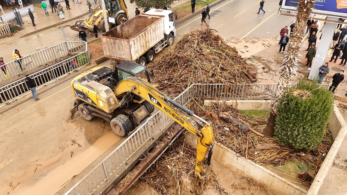 Taşkın yaşanan bölgelerde yüzey akıntısıyla sürüklenen çakıl, toprak ve odun atıkları iş makineleriyle temizlendi. Mersin Büyükşehir Belediyesi bünyesinde oluşturulan Kriz Merkezi koordinasyonunda yapılan çalışmalarla vatandaşların can ve mal güvenliğinin korunması hedeflendi.