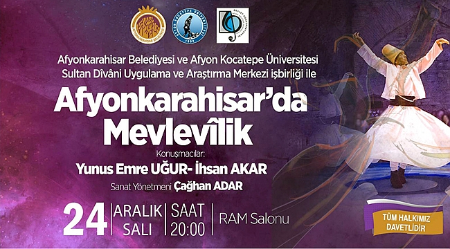 Afyonkarahisar Belediyesi ile Afyon Kocatepe Üniversitesi Sultan Divani Uygulama ve Araştırma Merkezi İşbirliği’nde “İlimiz’de Mevlevilik” anlatılacak.