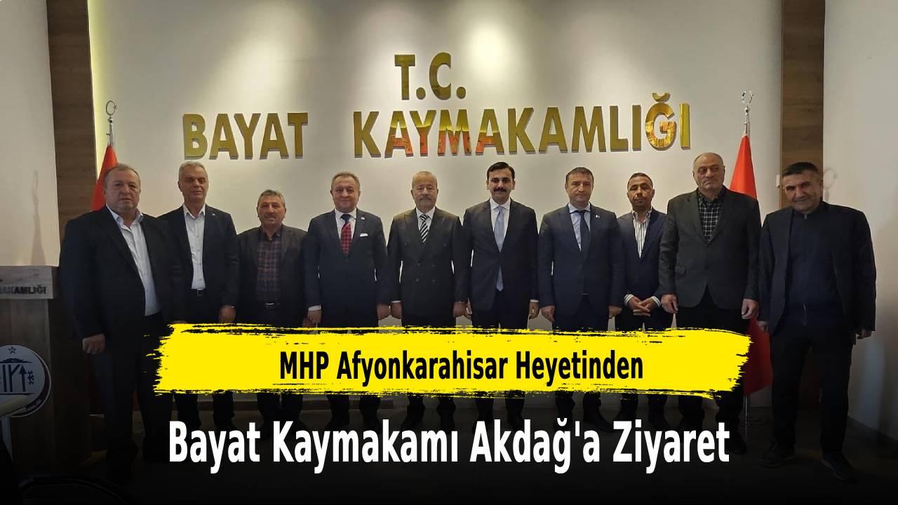 Milliyetçi Hareket Partisi (MHP) Afyonkarahisar İl Başkanı Ahmet Kahveci ve MHP Milletvekili Mehmet Taytak ile birlikte Afyonkarahisar MHP Heyeti, Bayat ilçesine ziyarette bulunarak yeni göreve başlayan Bayat Kaymakamı Ahmet Akdağ’a makamında hayırlı olsun ziyaretinde bulundu.