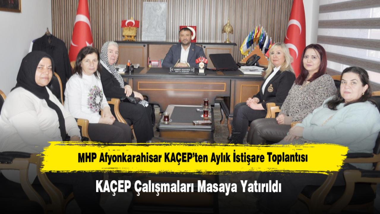 Milliyetçi Hareket Partisi (MHP) Afyonkarahisar İl Başkanı Ahmet Kahveci, KAÇEP’ten Sorumlu İl Başkan Yardımcısı Av. Nesrin Çelikbilek ve KAÇEP üyelerinin katılımıyla aylık istişare toplantısı gerçekleştirildi. Toplantıda, KAÇEP bünyesinde yürütülen çalışmalar kapsamlı şekilde ele alındı.