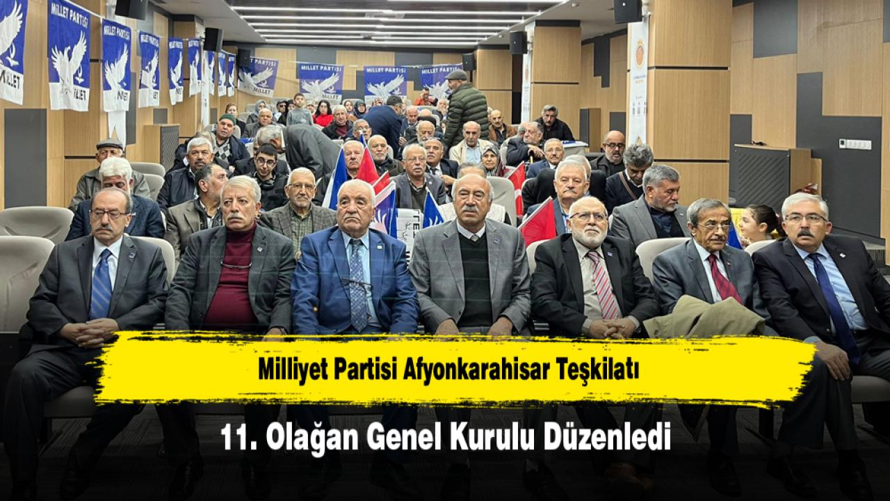 Millet Partisi Afyonkarahisar İl Başkanlığı tarafından düzenlenen 11. Olağan Genel Kurulu Gedik Ahmet Paşa Kütüphanesi konferans salonunda düzenlendi. Genel kurulda divan başkanlığını Kütahya İl Başkanı Ahmet Vallı yürütürken, kâtip üyeliklerini İl Yönetim Kurulu Üyesi İbrahim Ayan ve Şuhut İlçe Başkanı Hüseyin Kaya üstlendi. Programda birlik, mücadele ve kararlılık mesajları öne çıktı.
