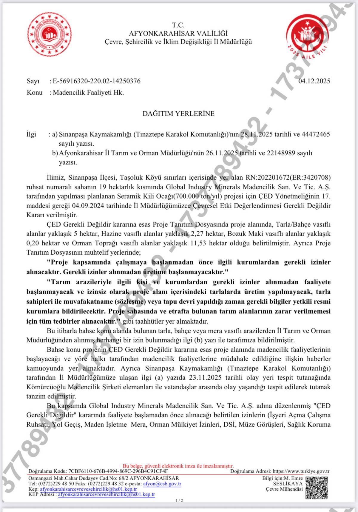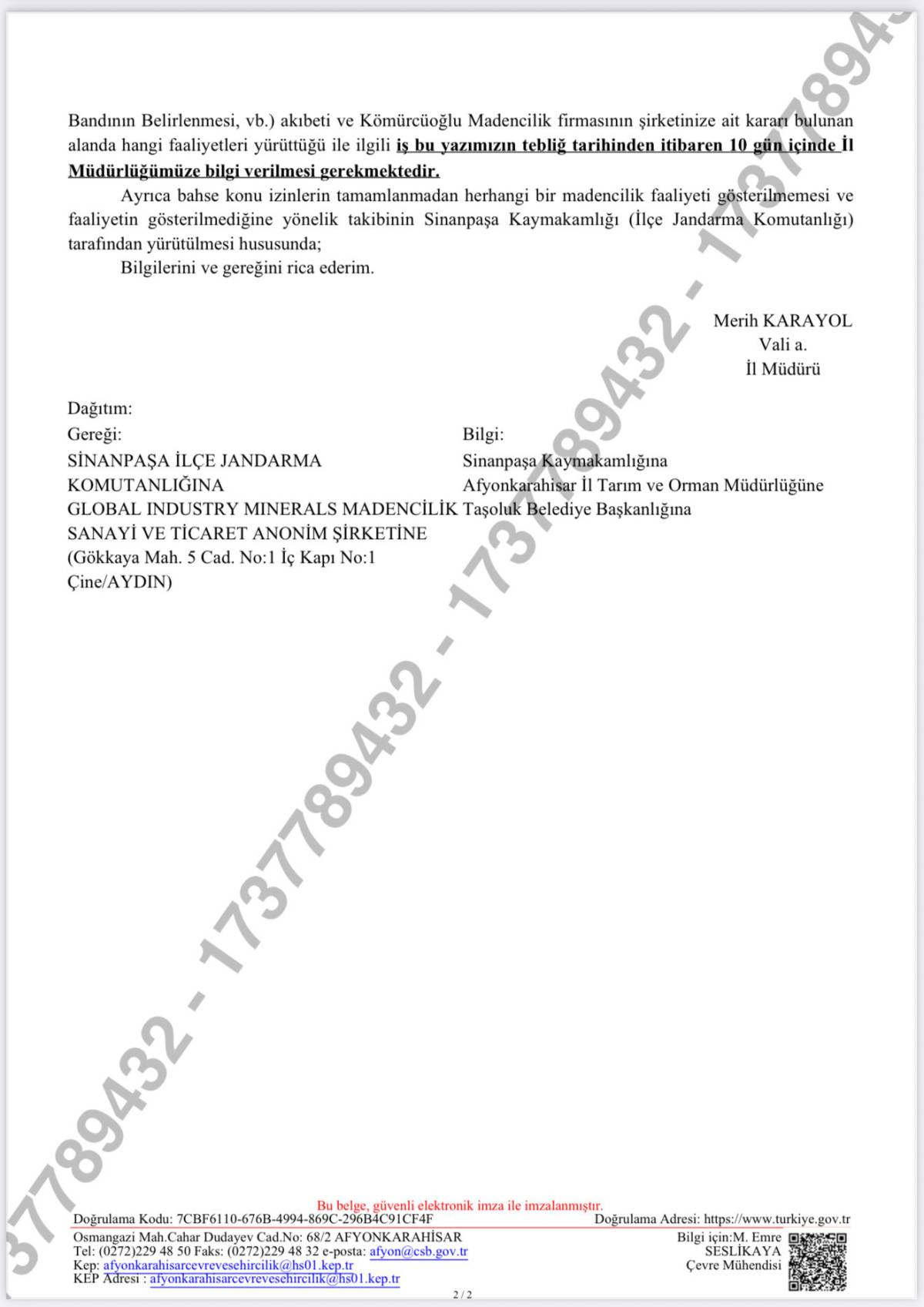 “Çevre ve Şehircilik İl Müdürlüğümüz, maden çıkarma sürecinde bulunan hata ve eksiklikleri belirleyerek süreci durdurmuştur.”