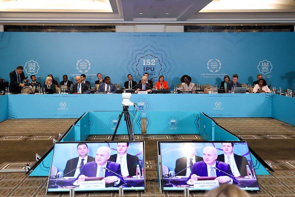 Türkiye Büyük Millet Meclisi’nin ev sahipliğinde düzenlenen toplantıya, TBMM Başkanı Numan Kurtulmuş da katıldı. Programda, IPU’nun çalışma planı ve önümüzdeki dönem faaliyetleri üzerine değerlendirmelerde bulunuldu.