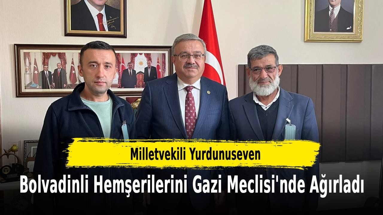 Ziyaretten duyduğu memnuniyeti dile getiren Milletvekili Yurdunuseven, “Gazi Meclisimizde Bolvadinli kıymetli hemşerilerimiz Sait Sarıtoprak ve Hüsnü Sarıtoprak’ı misafir etmekten büyük mutluluk duydum. Nazik ziyaretleri için kendilerine teşekkür ediyor, hayırlı günler diliyorum.” ifadelerini kullandı.