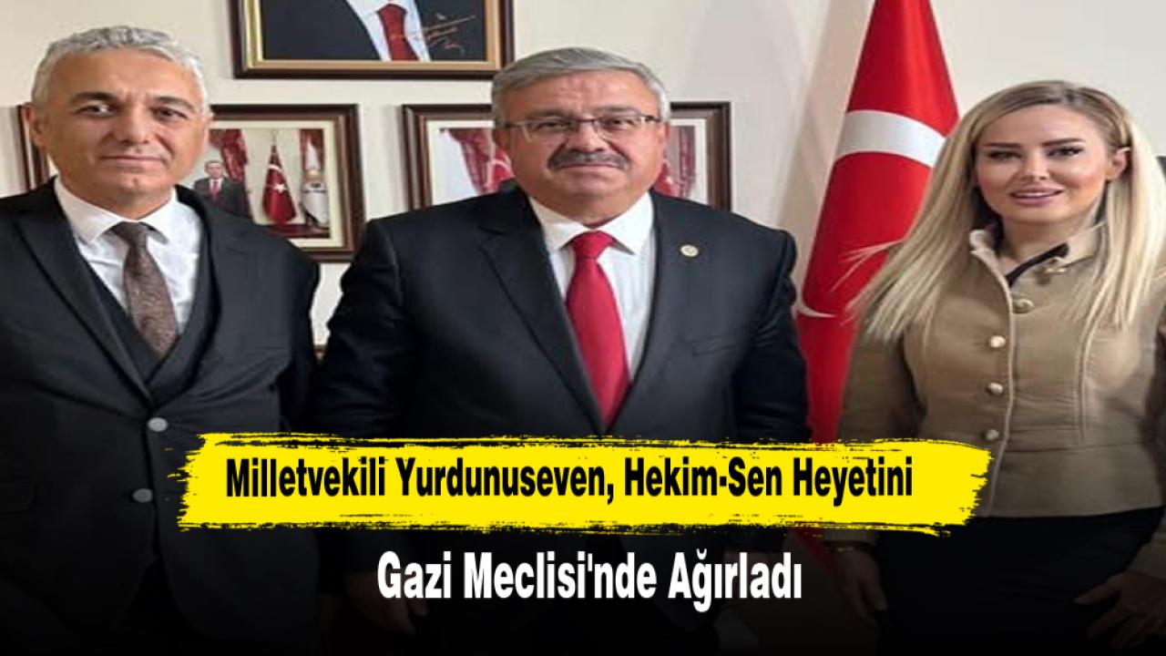 AK Parti Afyonkarahisar Milletvekili Av. İbrahim Yurdunuseven, Türkiye Büyük Millet Meclisi’nde sağlık çalışanlarını temsil eden Hekim-Sen Genel Başkanı Uzm. Dr. Adil Kurban ile Basın Koordinatörü ve Resmi İlişkiler Direktörü Elif Arıkan’ı ağırladı.