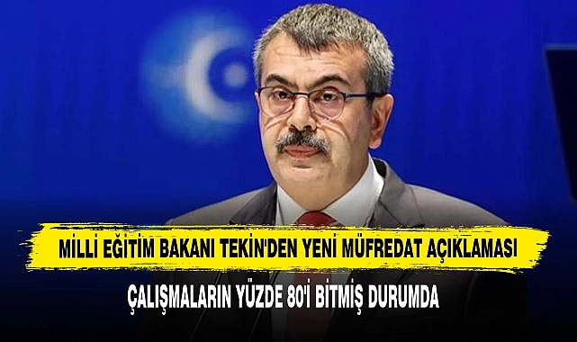 Milli Eğitim Bakanı Yusuf Tekin gazetecilerin sorularını yanıtladı. 2024-2025 yıllarında uygulanacak yeni müfredatla ilgili bilgiler paylaşan Bakan Tekin, "2024-2025 eğitim öğretim yılında 1-5. ve 9. sınıflarda uygulanacak. Çalışmaların yüzde 80'i bitmiş durumda. Önümüzdeki haftalarda hepsi tamamlanmış olacak ve kademeli olarak uygulamaya geçilecek" ifadelerini kullandı.