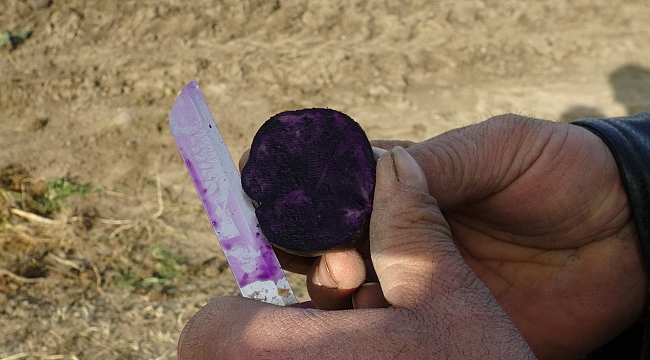Tarım ve Orman Bakanlığınca tescilli yerli "mor patates" tohumunun ekildiği Afyonkarahisar'ın Sandıklı ilçesinde hasattan yüksek verim elde edildi.