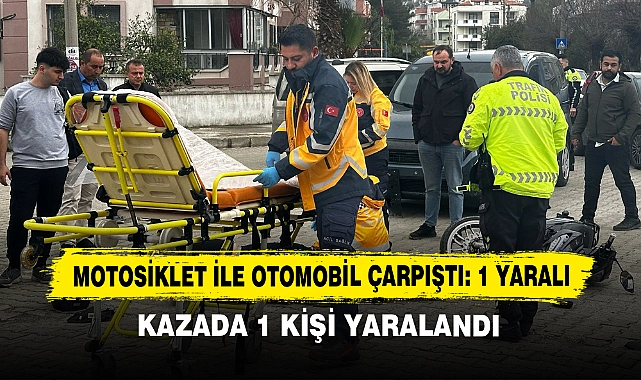 Motosiklet ile otomobil çarpışması sonucu meydana gelen trafik kazasında bir kişi yaralandı.