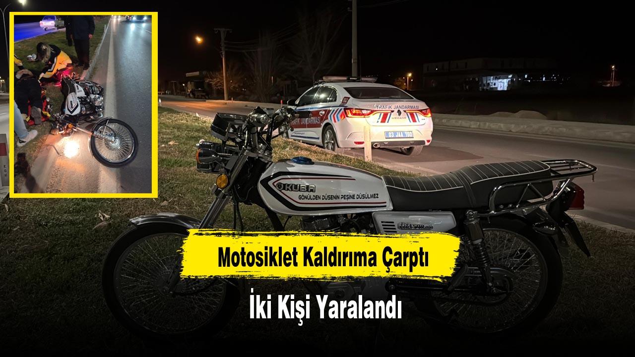 Kaza, Bolvadin ilçesi Kaçan Kavşağı yakınlarında meydana geldi. Edinilen bilgilere göre, A.N., idaresindeki 03 AIP 350 plakalı motosiklet sürücüsünün henüz belirlenemeyen bir sebepten ötürü direksiyon hakimiyetini kaybetmesi sonucu kontrolden çıktı. Motosiklet ardından yol kenarındaki kaldırıma çarpıp peyzaj alanına devrildi. Yaklaşık 10 metre sürüklenerek durabilen motosiklette sürücü ile birlikte yanında bulunan S.N., yaralandı. Yaralılar kaza sonrası çevredekilerin haber vermesi üzerine olay yerine gelen ambulanslarla hastanelere kaldırıldı. Yaralıların sağlık durumlarının iyi olduğu bildirildi.