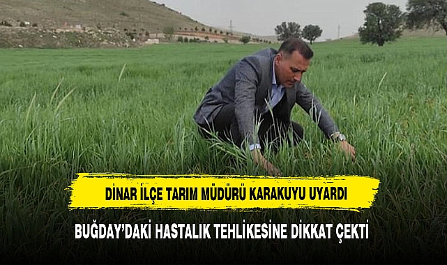 Dinar Tarım İlçe Müdürü Yavuz KARAKUYU, "sahada yaptığı çalışmalarda ilçe genelinde iklim şartlarının hububat üretim alanlarında buğdayda Septoria (yaprak leke hastalığı ) için uygun olduğu tespit edildi.Ürünlerinde verim kaybı yaşamak istemeyen üreticilerimizin en kısa sürede hastalık olan arazilerinde ilaçlı mücadele yapmaları, daha önce ilaç yapanların ilacın etki süresine göre tekrarlamaları ve ürün gelişimini takip edip tedbir almaları gerekmektedir." dedi.>>EVREN ATCI