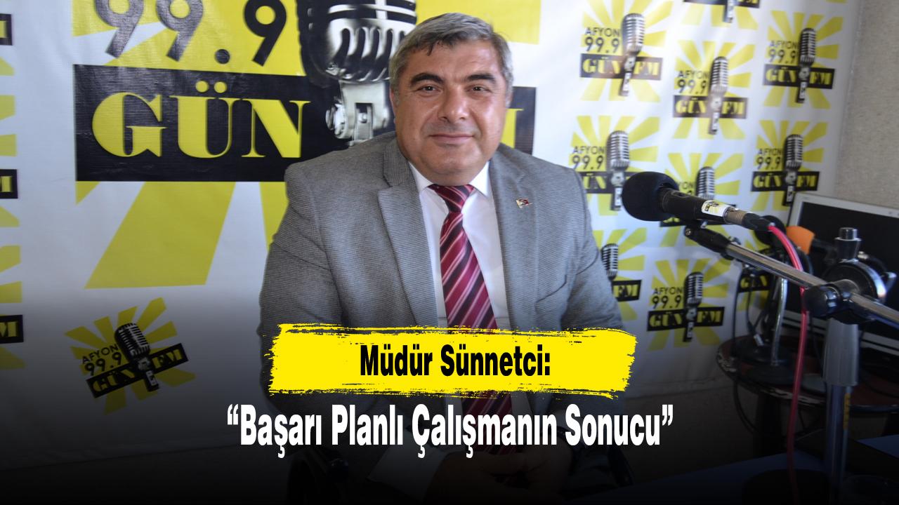 Afyonkarahisar İl Milli Eğitim Müdürü Miraç Sünnetci, Gün FM’in konuğu olarak yaptığı açıklamada, son üç yılda Afyonkarahisar’ın akademik başarısında gözle görülür bir artış yaşandığını belirtti. Sünnetci, “Akademik başarıda yakaladığımız yükseliş tesadüfî değil, planlı ve sürekli takip edilen bir sürecin ürünüdür. Her zaman söylüyorum, bu bir ekip işi. İl yöneticilerimiz, ilçe yöneticilerimiz, okul yöneticilerimiz, öğretmenlerimiz, velilerimiz, bize destek olan paydaşlarımız ve öğrencilerimiz hepsi bu ekibin parçası. Öğrencilerimizin başarısını artırmak için her kademede hedefler koyuyor, öğretmenlerimizle birlikte yol haritası oluşturuyoruz” dedi.