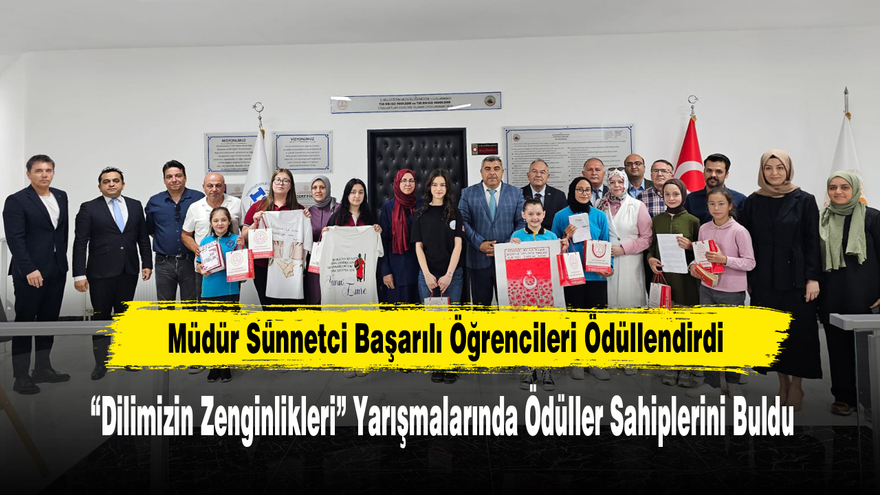 Törende konuşan İl Müdürü Miraç Sünnetci, yarışmalarda başarı gösteren öğrencilerle tek tek ilgilenerek, okudukları kitaplar ve hazırladıkları eserler üzerine sohbet etti. “Dilimizin Zenginlikleri Projesi, öğrencilerimizin Türkçenin inceliklerini öğrenmesini sağlamakta, unutulmaya yüz tutmuş sözcüklerin anlamlarını yeniden canlandırmaktadır. Fuzuli’den Yunus Emre’ye, Mevlana’dan Ömer Seyfettin’e kadar edebiyatımızın büyük isimlerinin eserlerinin ilkokuldan liseye kadar öğrencilerimiz tarafından okunması, duygu ve düşünce dünyalarının zenginleşmesine katkı sağlamaktadır,” ifadelerini kullandı.