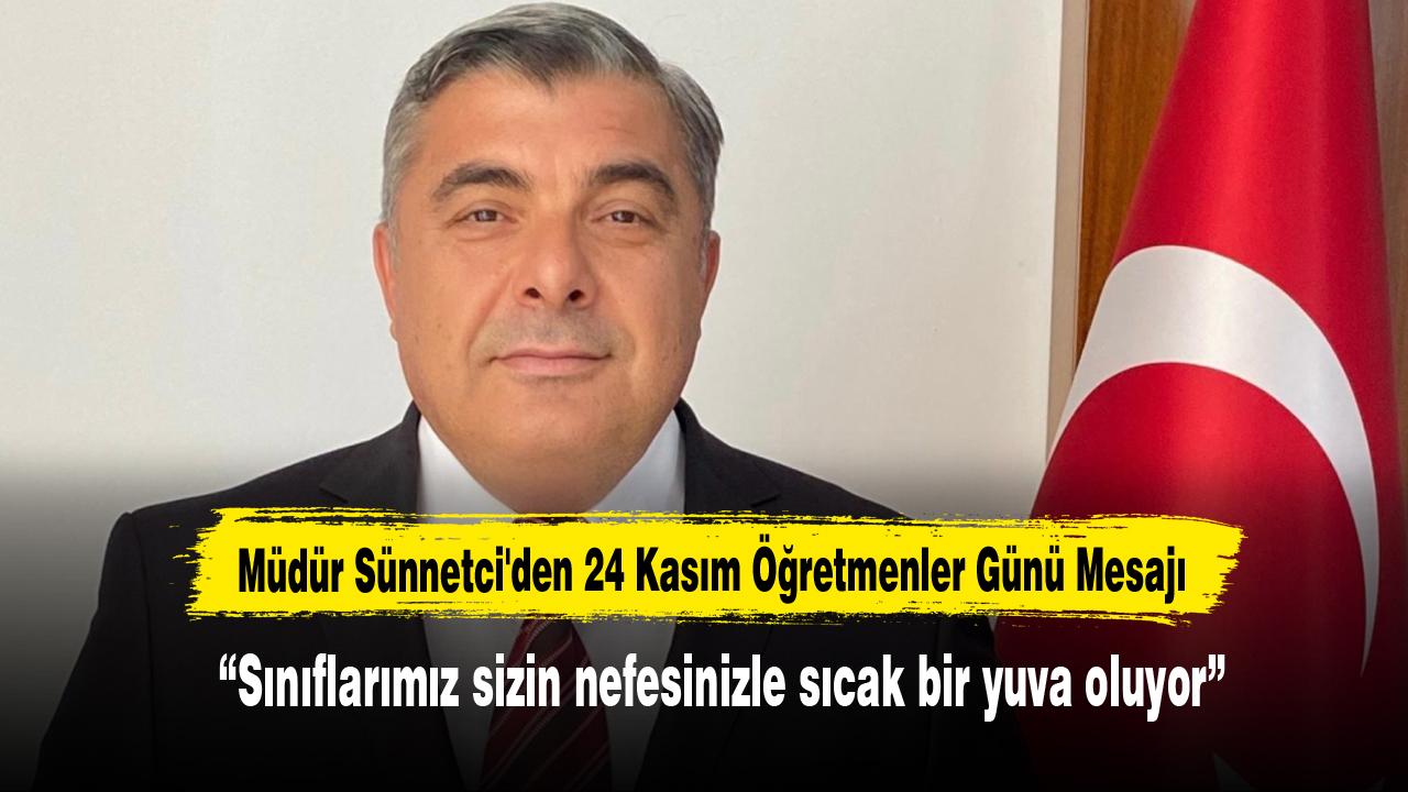 Mesajının son bölümünde öğretmenlerin özveri ve fedakârlığı sayesinde eğitim ailesinin güçlendiğini belirten İl Milli Eğitim Müdürü Sünnetci, şu ifadeleri kullandı: ”Değerli Öğretmenlerim,Sizlerin özverisi, fedakârlığı ve idealizmi sayesinde eğitim ailemiz her geçen gün daha da güçleniyor. Sınıflarımız sizin nefesinizle sıcak bir yuva oluyor, okullarımız sizin gayretli çalışmalarınızla güzelleşiyor. Güçlü yarınlar için gösterdiğiniz özveri ve fedakârlığınız için ne kadar teşekkür etsek azdır. Bu duygularla; başta Başöğretmen Gazi Mustafa Kemal Atatürk olmak üzere, ebediyete irtihal eden tüm öğretmenlerimizi rahmet ve minnetle anıyor; şu anda görev yapan, emekli olmuş veya eğitime gönül vermiş bu ailenin her bir ferdi olan tüm öğretmenlerimizin 24 Kasım Öğretmenler Günü'nü en içten dileklerimle kutluyorum. İyi ki geleceği sizin gibi yürekleri güçlü öğretmenlere emanet ediyoruz. Güçlü Köklerimizle Sonsuzluğa Uzanan Dallar Yetiştirmeye Devam Edeceğiz.”