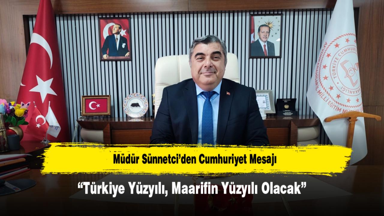 Afyonkarahisar İl Milli Eğitim Müdürü Miraç Sünnetci, Cumhuriyetin 102. yılı dolayısıyla yayımladığı mesajda, eğitim camiasının Türkiye Yüzyılı’na yön verecek nesiller yetiştirme kararlılığını vurguladı. “Cumhuriyet, köklerimizden aldığımız gücü geleceğe taşıyan bir köprüdür.” dedi.
