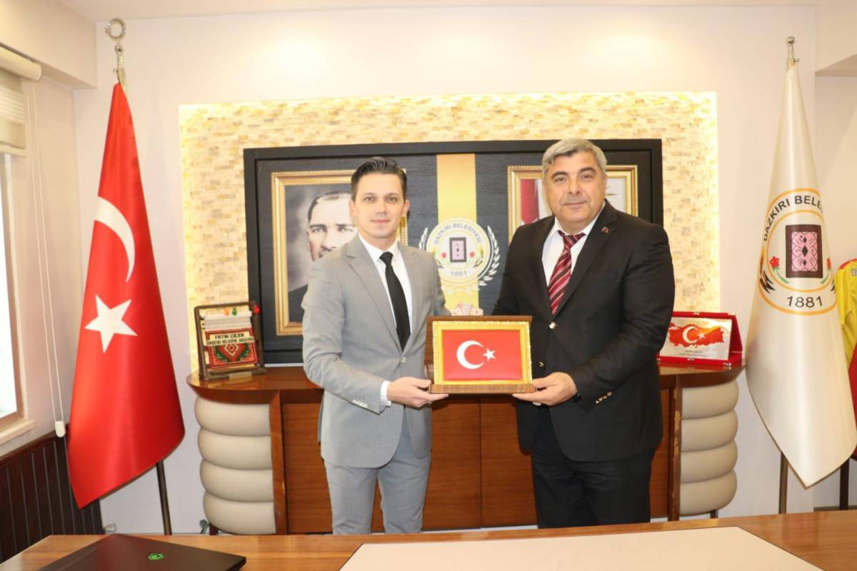 İl Milli Eğitim Müdürü Miraç Sünnetci, ardından Belediye Başkanı Fatih Çiçek’i makamında ziyaret ederek ilçedeki eğitim çalışmalarına ilişkin değerlendirmelerde bulundu. Samimi sohbetin ardından Sünnetci, Başkan Çiçek’e misafirperverliği dolayısıyla teşekkür etti. Ziyaret, Türk bayrağı takdim etti.