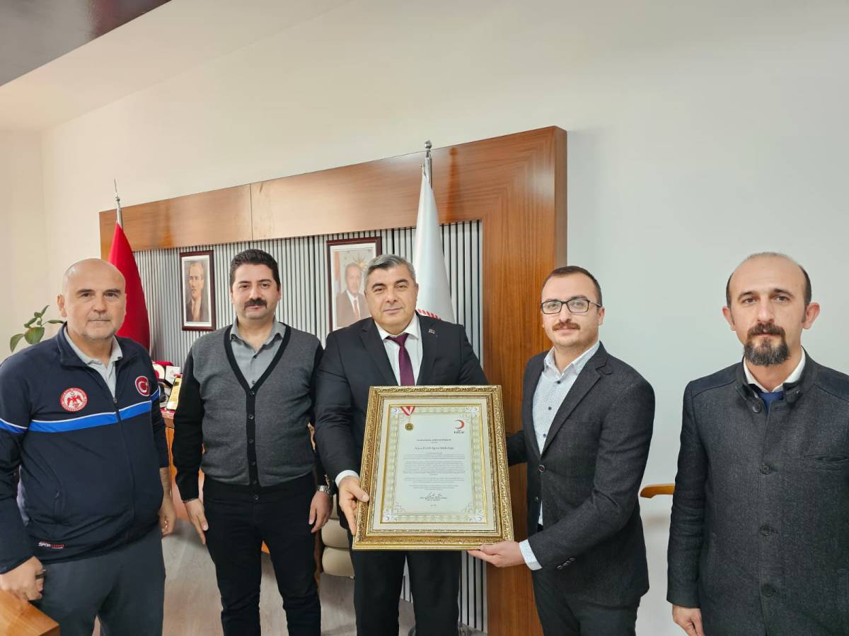 Gerçekleştirilen görüşmede, kan bağışı kampanyalarındaki başarılı çalışmalar dolayısıyla Türk Kızılay Afyonkarahisar Kan Bağış Merkezi Müdürlüğü yetkilileri tarafından İl Milli Eğitim Müdürü Miraç Sünnetci’ye madalya ve plaket takdim edildi.