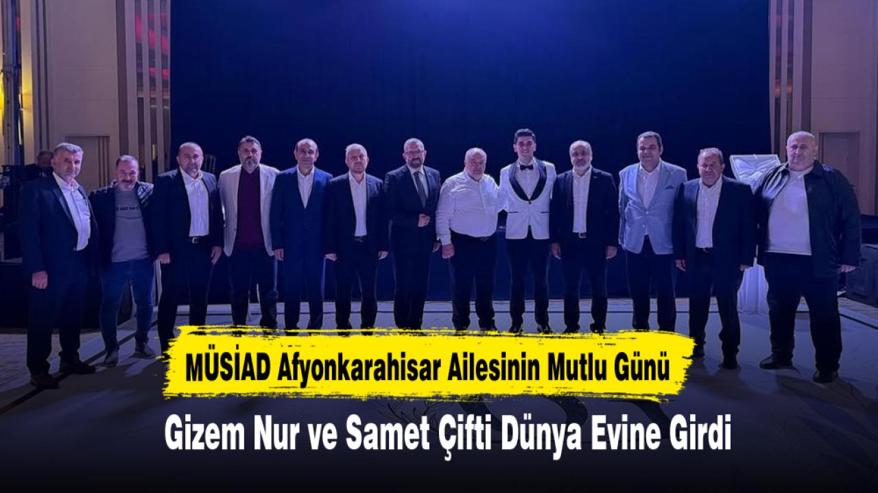 MÜSİAD Başkan Yardımcısı Haydar Kaya'nın kızı Gizem Nur ile Samet'in düğün töreni, Afyonkarahisar iş ve sanayi camiasının yoğun ilgisiyle gerçekleşti. Şube Başkanı Ercan İşlek liderliğindeki MÜSİAD heyeti, düğün boyunca Kaya ailesini yalnız bırakmayarak çiftin mutluluğuna ortak oldu.