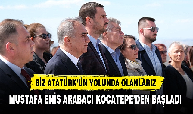 “Mustafa Kemal Atatürk ve silah arkadaşlarının Kocatepe’den başladığı gibi bende buradan başlamak istedim” dedi. Aday listelerinin açıklandığı günden itibaren hiç durmadan çalışmalara devam eden Mustafa Enis Arabacı, Cumhuriyet’in 100. Yılında resmi seçim çalışmasına Kocatepe’den başladı. Atatürk anıtına çelen koyarak başlayan Arabacı saygı duruşu ve istiklal marşının okunmasından sonra yaptığı konuşmada seçim çalışmasını Türkiye’nin mihenk taşı dediği Kocatepe’den başladığını söyledi. Arabacı, “Kocatepe tarihin yazıldığı noktalardan birisi. Mustafa Kemal Atatürk ve silah arkadaşları büyük taarruzu ve zaferi buradan başlattı. Tıpkı 1071’de Anadolu topraklarını Türklere vatan yapan Alparslan gibi büyük önder Mustafa Kemal Atatürk’te 1922’de Kocatepe’den ülkenin bağımsızlık ateşini yaktı. Bende çalışmalarıma onun izinden Kocatepe’den başlamak istedim” dedi Mustafa Enis Arabacı konuşmasını şöyle sürdürdü, “Ülke siyasetinde maalesef büyük bir ayrıştırıcı dil var. Birleşmemiz, kenetlenmemiz gerekirken sürekli bölünmeye çalışıyoruz. Ülke insanlarını kutuplaştıran ve ayrıştıran bir dil kullanılıyor. Ben bu dilin değişmesi için farklı bir dil kullanmak için aday oldum. Algılar üzerinden yapılan siyasetin kimseye bir faydası yok. Kendimize güvenelim, bir birimizi sevelim, herkesi bizden birisi gibi kabul edelim. Öfke değil sevgi dilini kullanarak yeni bir tarih yazabiliriz.