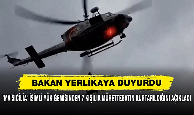 İçişleri Bakanı Ali Yerlikaya, sabah saatlerinde tahliye çalışması başlatılan "MV Sicilia" isimli yük gemisinden 7 kişilik mürettebatın kurtarıldığını açıkladı.