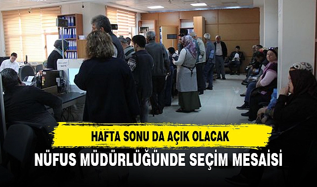 Konuyla ilgili kurumdan yapılan açıklamada, “14 Mayıs 2023 tarihinde yapılacak olan Cumhurbaşkanı Seçimi ve 28 Dönem Milletvekili Genel Seçimlerine esas olmak üzere vatandaşlarımız tarafından TC kimlik kartı, sürücü belgesi, pasaport, adres kayıt işlemlerinin yapılabilmesi için 1-2 Nisan 2023 tarihlerinde Cumartesi ve Pazar günleri 08.30- 17 saatleri arasında İl Nüfus ve Vatandaşlık Müdürlüğümüz ve bağlı 18 ilçe nüfus müdürlüğümüz açık bulundurulacaktır" ifadelerine yer verildi. >>İHA