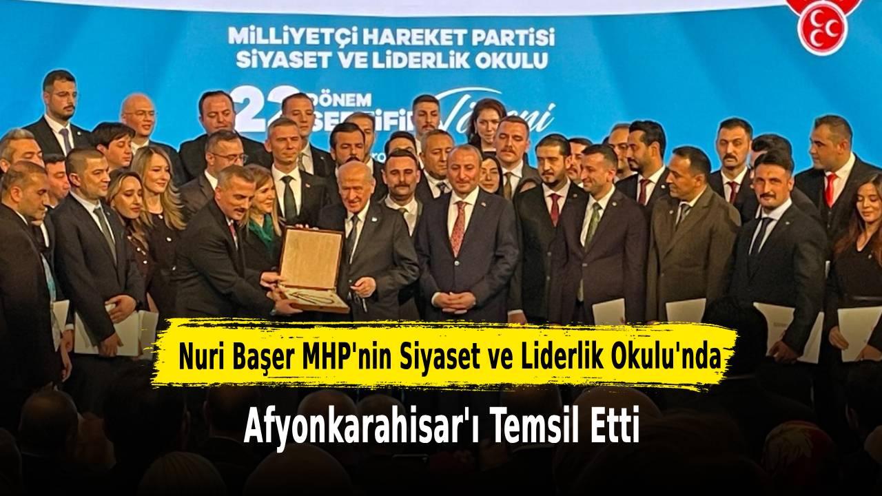 Afyonkarahisar Ülkü Ocakları İl Başkanlığı'nın önceki dönem Yönetim Kurulu Üyesi Nuri Başer, MHP Siyaset ve Liderlik Okulu'nun 22. Dönem Sertifika Töreni'nde belge takdim edilenler arasında yer aldı. MHP Genel Başkanı Devlet Bahçeli'nin katılımıyla gerçekleşen törende büyük coşku yaşandı.
