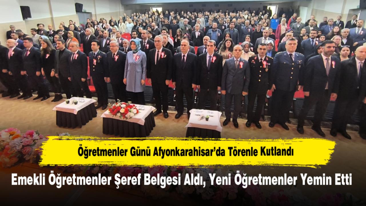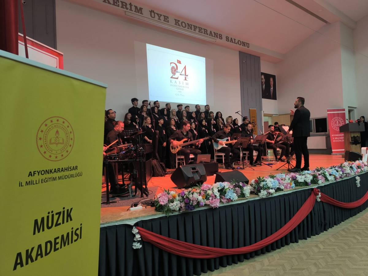Afyonkarahisar’da 24 Kasım Öğretmenler Günü dolayısıyla Şehit Kerim Üye Konferans Salonu’nda kapsamlı bir program gerçekleştirildi. Törene Vali Doç. Dr. Kübra Güran Yiğitbaşı, Belediye Başkan Yardımcısı Ömer Yıldız, İl Emniyet Müdürü Ahmet Birtan Erol, İl Jandarma Komutanı Albay Murat Kaya, AK Parti İl Başkanı Turgay Şahin, İl Milli Eğitim Müdürü Miraç Sünnetci’nin yanı sıra il müdürleri, çok sayıda öğretmen ve öğrenci katıldı.