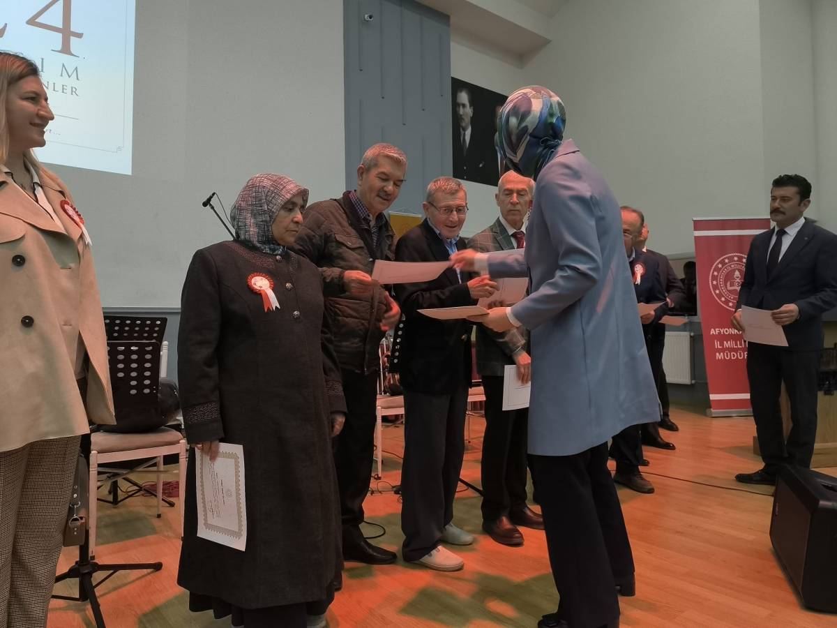 Sünnetci'nin konuşmasından sonra sahneye emekliye ayrılan öğretmenler davet edildi. Emekli öğretmenler Afyonkarahisar Valisi Doç. Dr. Kübra Güran Yiğitbaşı tarafından uzun yıllar eğitim camiasına hizmet eden öğretmenlere Şeref Belgesi takdim etti.